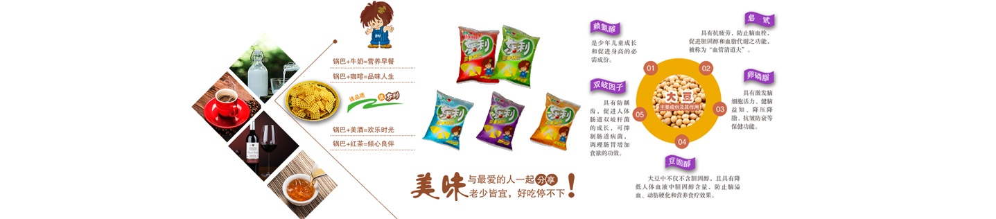 山西運(yùn)城市鑫諾食品有限公司是以生產(chǎn)休閑小食品為主的企業(yè),生產(chǎn)基地位于關(guān)公故里山西運(yùn)城(鹽湖工業(yè)科技園),主要生產(chǎn)并銷售“東利”牌豆香鍋巴系列休閑食品。